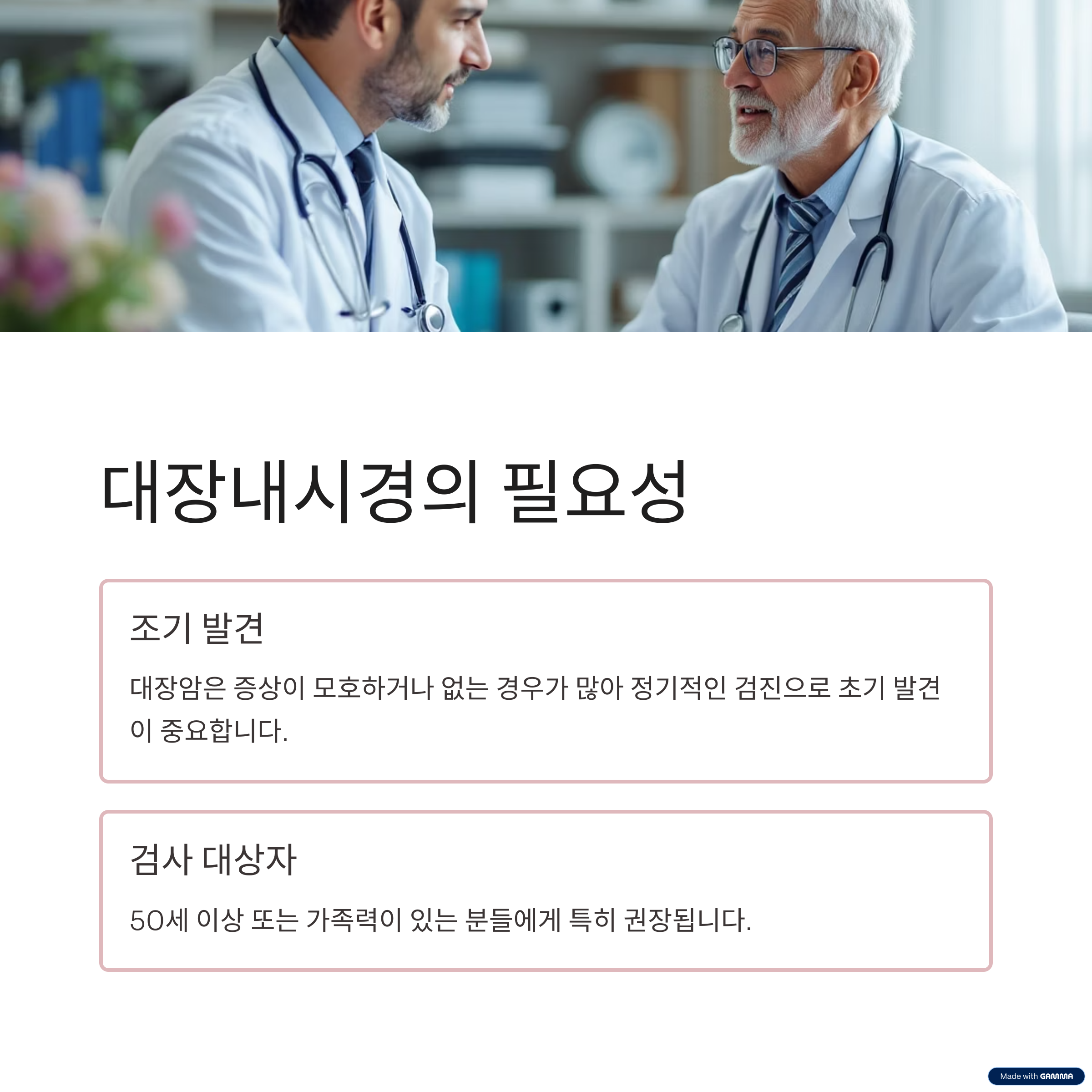 | 대장내시경 필요성 | 조기 발견을 위한 필수 건강검진 항목입니다. |